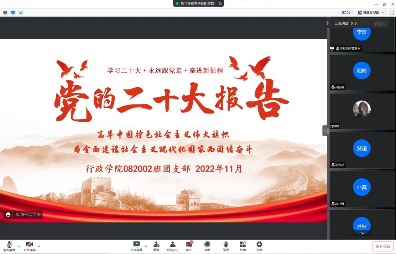 通过本次线上团日活动,同学们深刻领悟到了习近平总书记关于高举中国特色社会主义伟大旗帜,为全面建设社会主义现代化国家而团结奋斗为主题的二十大报告精神。相信通过本次团日活动,行政学子将继续砥砺前行,赓续传承成人论坛